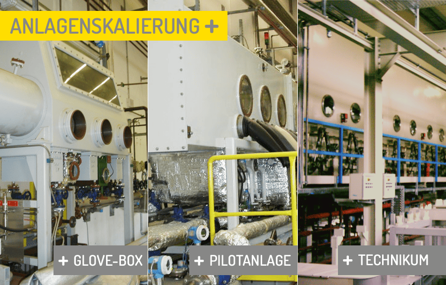 Aufbauend auf mehreren Anlagengrößen angefangen von der 2 Liter Labor-Zelle, über die 20L Glovebox, einer 200L Pilotanlage und einer 1000L Technikumsanlage wurde das Verfahren ALUMINAL über die Jahre bis zur großen Produktionsanlage mit einem Badvolumen von über 5.000L hoch skaliert.