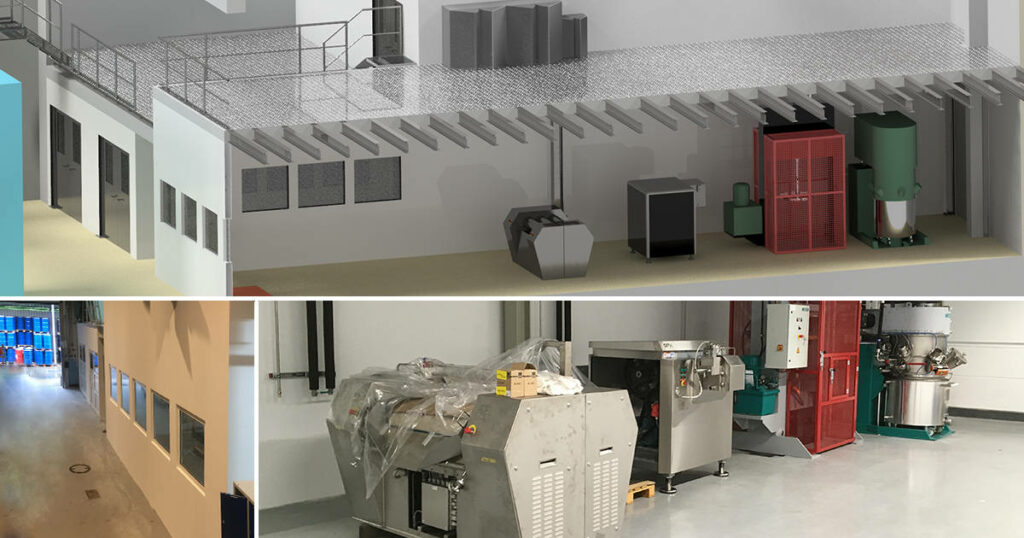 Um einzelne Produktionsbereiche für verschiedene Anwendungen in der Fettherstellung zu schaffen wurden 4 voneinander abgetrennte Räumlichkeiten geplant und eine neue Stahlbühne entsprechend angepasst und eingebracht.